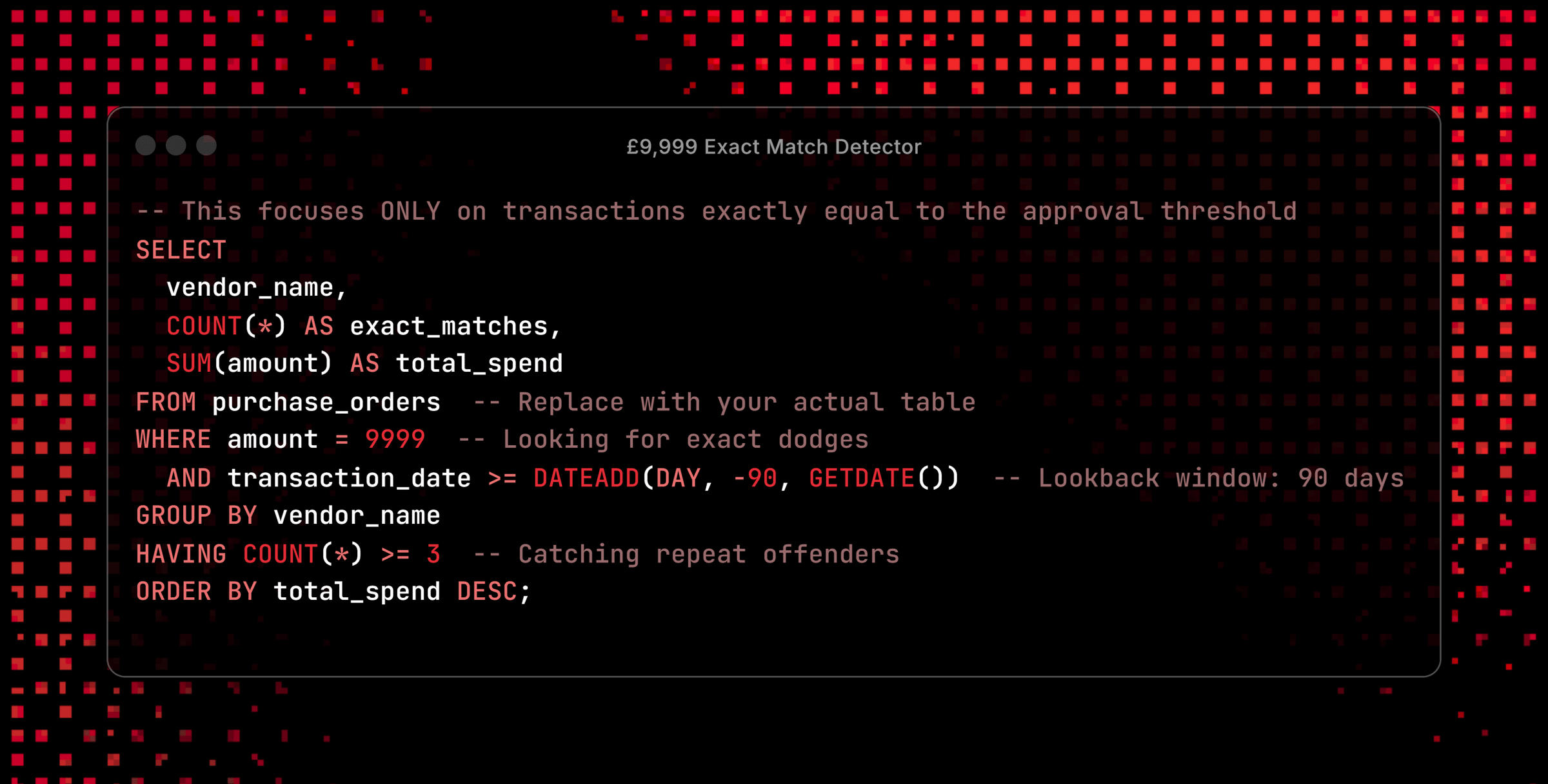 But you don't need a full machine learning setup to start catching these patterns. Sometimes a well-crafted SQL query does 80% of the work.